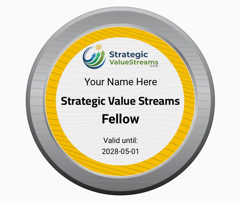 Fellowship represents the most advanced credential within the Strategic Value Streams framework. Its validity governs overall certification standing.